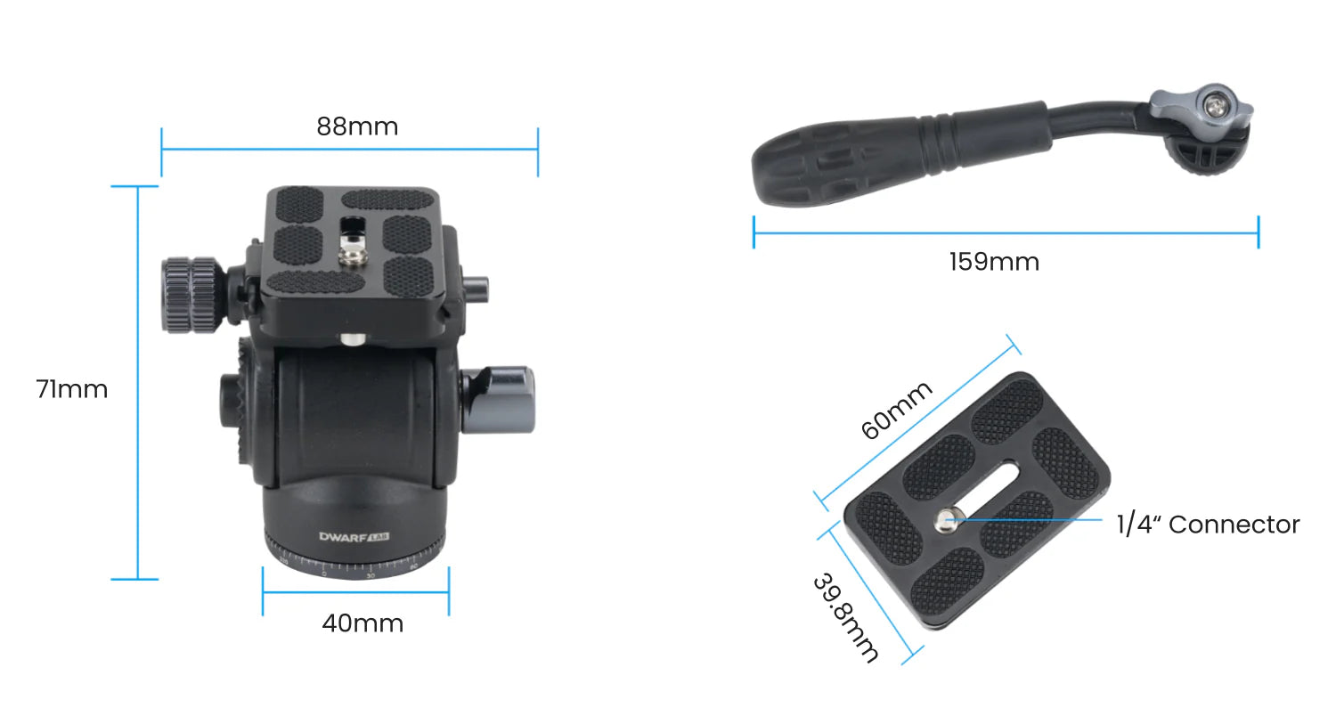 The tripod legs are made of aluminum alloy, and the 5-section legs with twist locks allow you to adjust the working height from 25cm to 53cm in seconds. Its 25cm folded size and 790g weight make it easy to carry anywhere for outdoor photography.